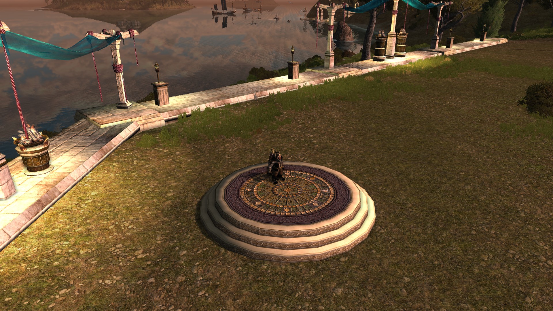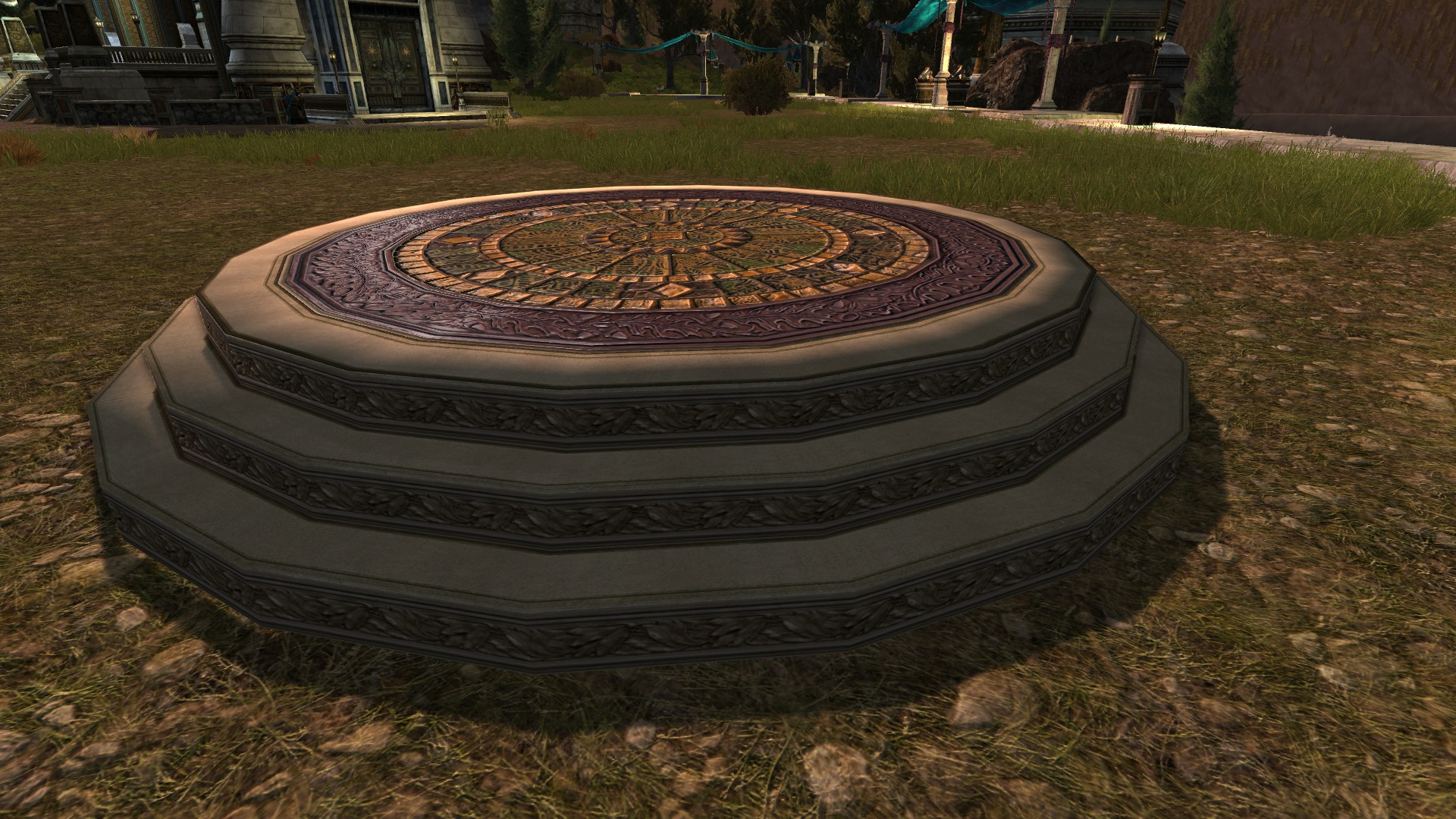 “Une estrade de pierre ornementée que l’on trouve souvent dans les terres Hobbites, idéale pour les festivités du solstice d’été.”